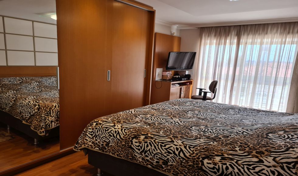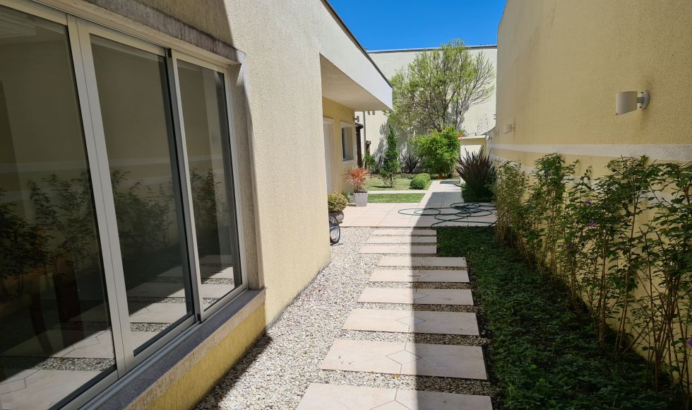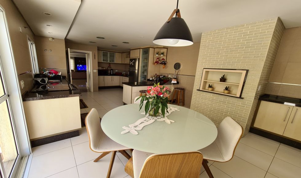 Residência com área de 221,78 mts² construída em terreno com 247,57 mts² distribuída em 03 pavimentos. O 1º pavimento (térreo) é ocupado por uma ampla sala de estar, sala de jantar, lavabo, copa, cozinha com integração à àrea gourmet que acesa ao jardim, lavanderia e vagas de garagens; no 2º pavimento estão os 03 dormitórios sendo 01 suíte master com banheira hidro, janelas com veneziana, sacada e ar condicionado e banheiro social; e no 3º pavimento um ático amplo com janelas para frente e fundos da casa, com lareira para maior conforto aos moradores. Construção projetada e executada pelo conceituado escritório de Engenharia e Arquitetura Leal Ribas, que contemplou o imóvel com beleza e sofisticação e cuidadosamente aos detalhes de ventilação e iluminação natural.