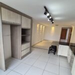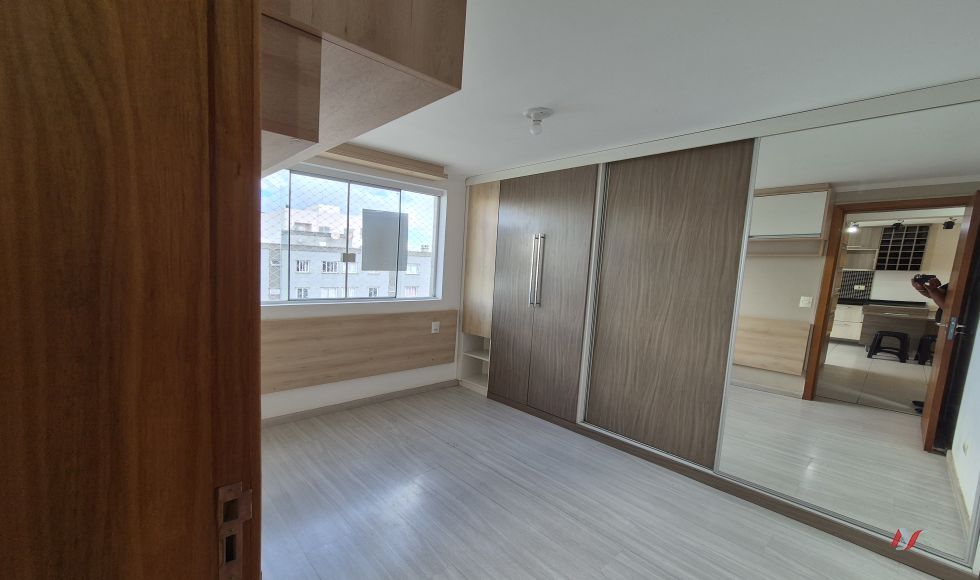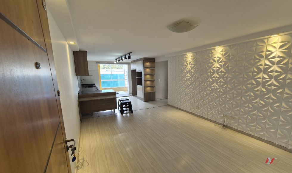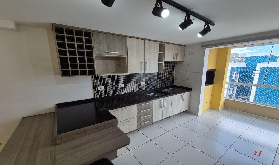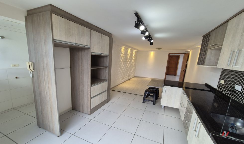 Apartamento com área total construída de 57,99 mts² composto de 02 dormitórios, banheiro social, sala/cozinha, área de serviço, sacada com churrasqueira e 01 vaga de garagem descoberta. Apartamento semi-mobiliado com móveis fixos planejados na cozinha, banheiro e em 01 dormitório. Posicionado no último pavimento, possui detalhes de decoração em gesso na parede da sala, piso laminado na sala e dormitórios.